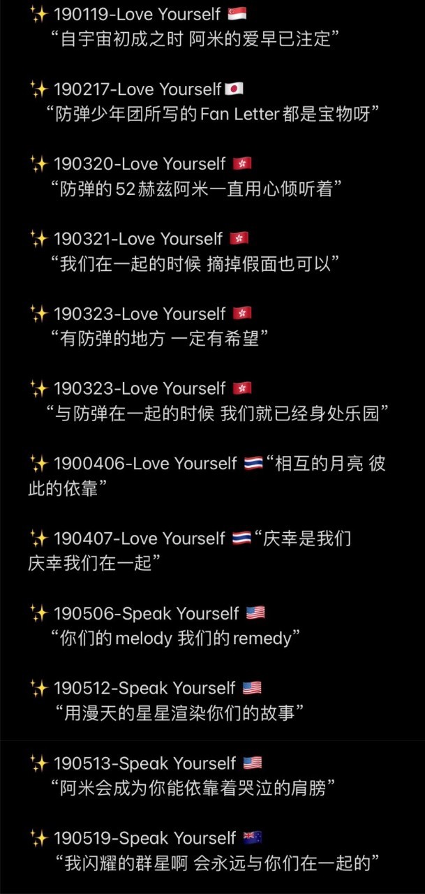 以及大家留个防弹的话语,是阿米们整理出各个国家的阿米话语,送给防弹的