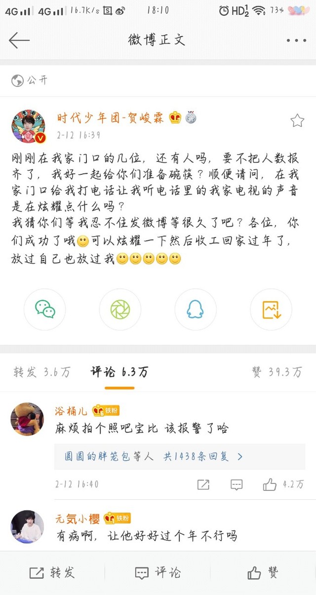 一下不是正文很抱歉,因为我今天本来没打算更的,突然发现自己已经好久没更了,再加上看到了非常烦的一件事,经过就是:我今天想去看轩儿有没有发微博,然后就看到贺儿的微博,就很生气,ss就不能消停会嘛大过年的,至于图等下我会发在后面,还希望看到的能够转发一下抵制ss,孩子们真的已经被吓怕了