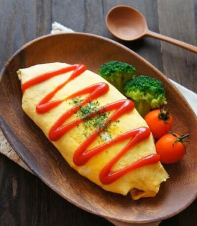 小杰好吃!《半凝蛋皮下包裹的是脆脆的胡萝卜香甜的玉米粒和被番茄酱入味的米饭实在是太好吃了!》