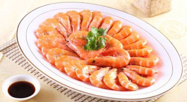 小杰拿了一份蛋包饭以后就拿了盘清蒸虾和蘸料就回到座位上啦