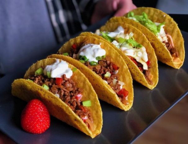 说着就小心地拿起一个墨西哥牛肉塔凑到嘴边轻轻的咬上一口