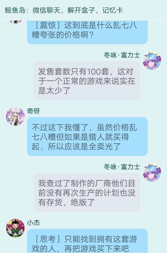 万能人物调酒师:友克鑫市的拍卖会上目前似乎有七套Greed Island,已经登记参加这一次的拍卖,最低得标价格是89亿戒尼
