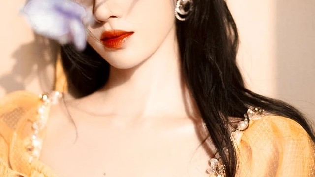 她身着一身黄色长裙,突出的锁骨连成一字,黑色的长发搭在肩上,精致的五官在灯光的映衬下更加抓人眼球。