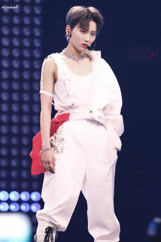 时陨有点慌神,但没有表现出来,在起身的时候顺势捡起那个麦,帅气的一丢,当做什么也没发生的开始最后的舞蹈表演