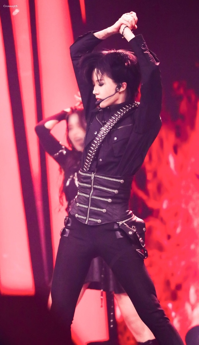舞台黑了下来,红光亮起,大屏幕上出现一个红字《猎》,战歌打响,三人换上了一声黑衣,正中间的一抹蓝发身影立即转换气场,周围冷成一片,纤细白皙的手指做枪状在空中变化,一声冷艳绝美的声音燃起了气氛,时陨果然是C位