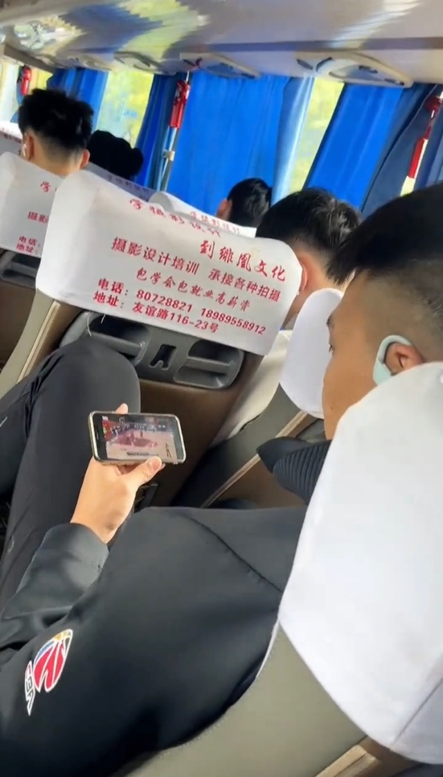 赵睿在去场馆的大巴车上一直在看比赛