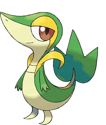 一只绿色的小蛇神奇宝贝出现在了草地上,它的尾巴处有一个小小的叶子。