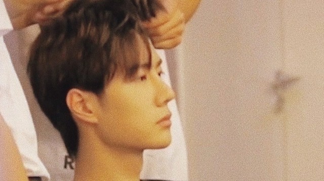 王一博发呆似的坐在那,任由造型师在他头上捣鼓。