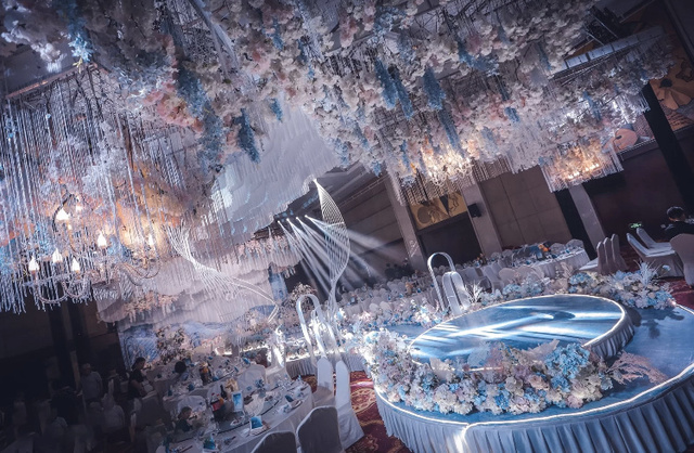 鹿晗手里拿着手捧花在婚礼的侧面走上来了