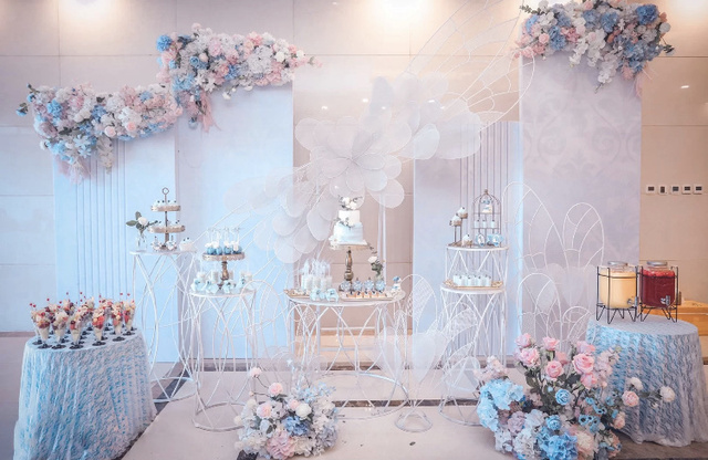 接下来就是敬酒了,两个人换好了敬酒服去给客人们敬酒了,接着又送客,婚礼圆满结束啦