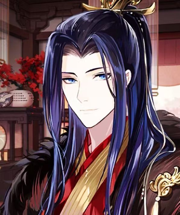 此时的路辰超过腰的蓝色马尾系着一根超过腰红色发带,戴着金色发冠,一袭红衣,衣服上有着金色纹路装饰。