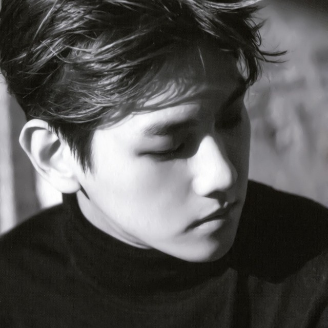 边伯贤撑着一把黑伞,伞很大,但是和他的身高却很搭,他有着1米88的个子,穿着一身黑色的运动服,黑伞遮住边伯贤的半张脸,只露出完美的下颚线。