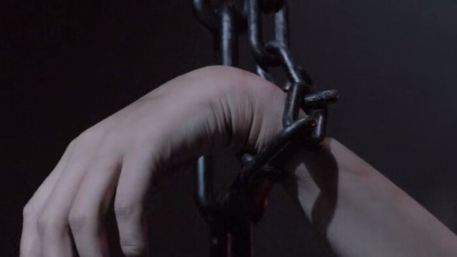 她被绑在铁架上,艰难的抬头看着朴子期,她靠近解开她手上的东西,她剧烈的摇头,推搡这她让她快走!