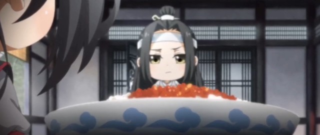 蓝忘机还没进门,就看到魏无羡身旁放着一个饭桶(是真的饭桶)。