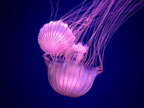 吴世勋一走进店里看到各式各样的水母眼睛都直了,趴在水母缸前盯着看