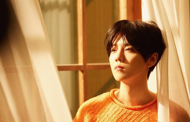 橘色的毛衣在温和的晨光照射下凸显男生的气质温和,举止言谈透露出优雅贵气