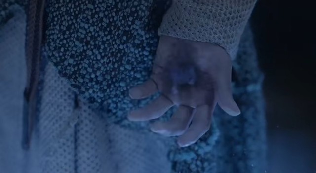 右手上出现了一只白色还有些红色的一团东西,但看不清是什么。