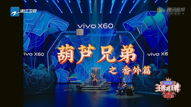 今天由蔡明老师和潘长江老师、穆书窈、时代少年团表演《葫芦娃》