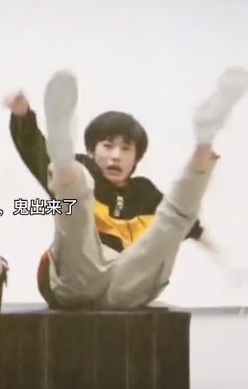 而徐小四和宋亚轩就头对着头,抱在一起,鬼要来了,宋亚轩就开始捂眼睛,但是没用,鬼出来了,宋亚轩还是被吓得四脚朝天