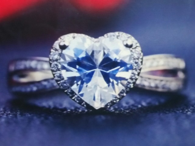 墨司夜这枚钻戒端庄华丽,里面是蓝钻心型,寓意:把心送给你