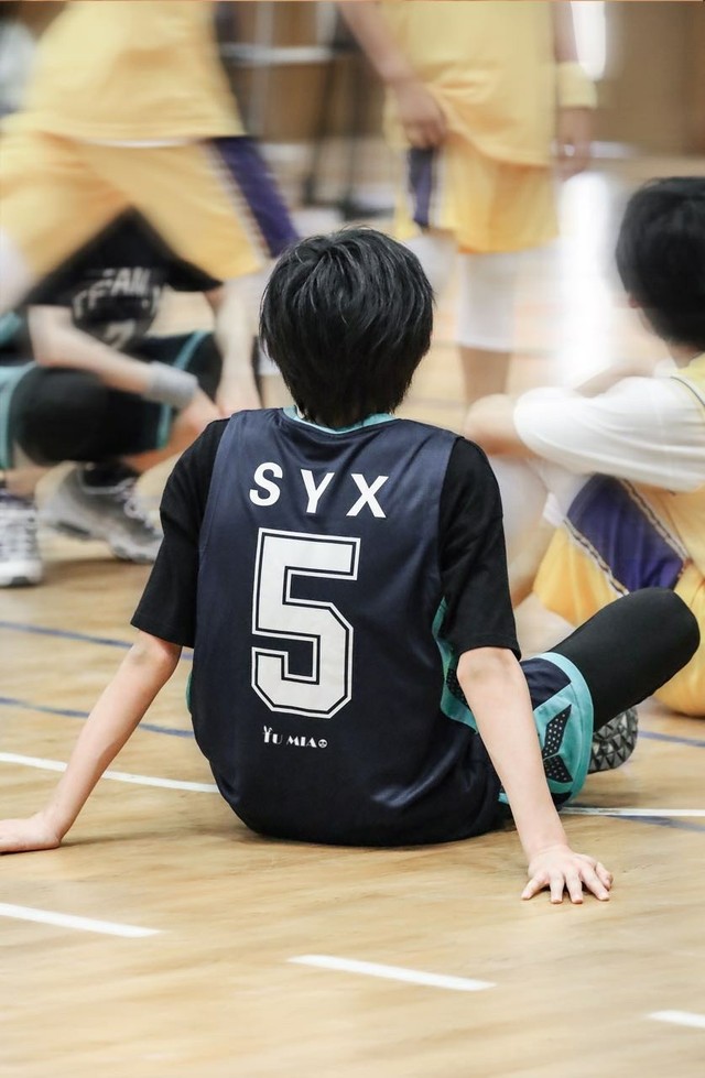 上半场结束,亚轩坐在地上休息