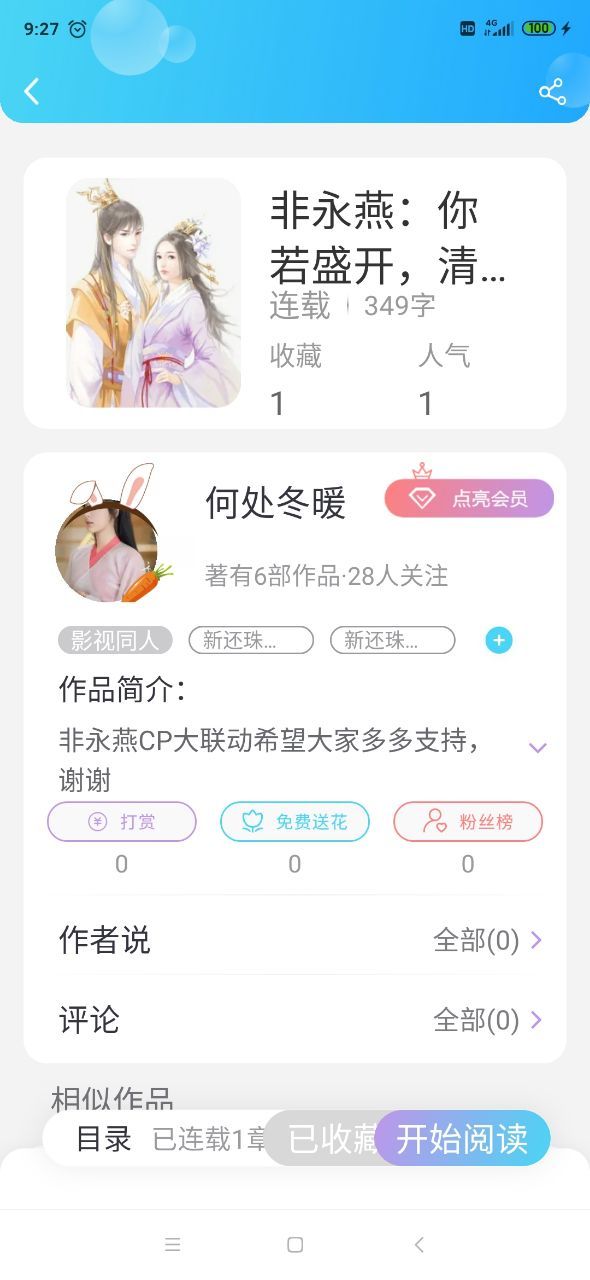 大大小号开了一篇非永燕CP综穿文希望大家多多支持