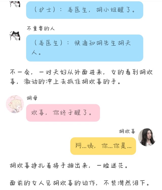不重要的人(姜医生):胡夫人,您别慌,胡小姐有可能是失忆了。