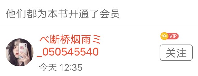 茗炽(是作者啦)感谢断桥烟雨宝贝今天点亮的会员吖!😘😘