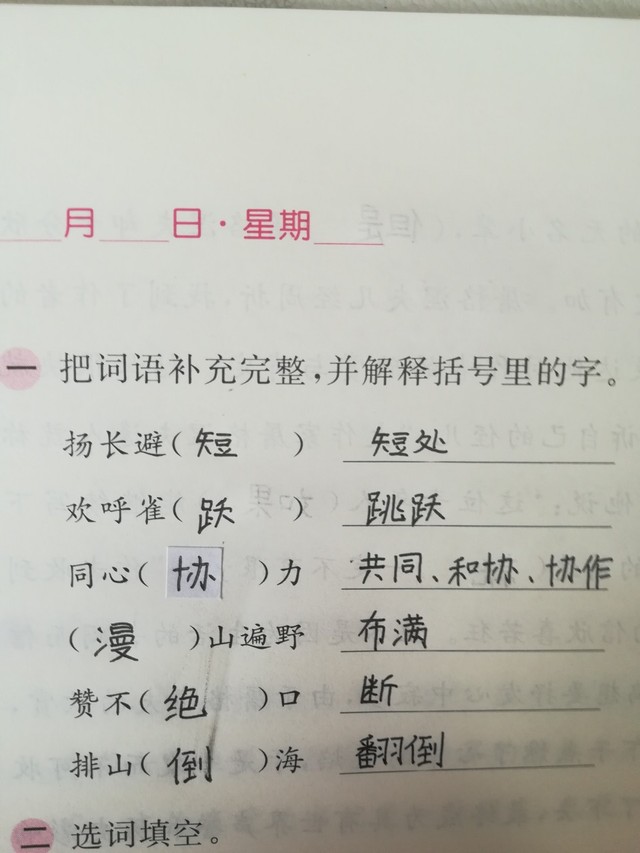水沝淼把词语补充完整,并解释括号里的字。