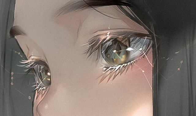 睫毛被眼里的液体黏到了一起,有些可怜兮兮。