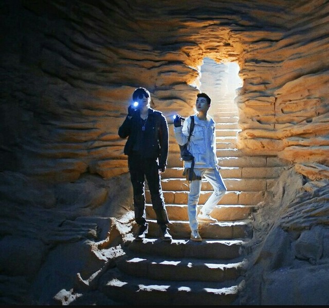 说着,他俩往出口走去,来到了一个石门,高约两米,两边都是石头堆起的