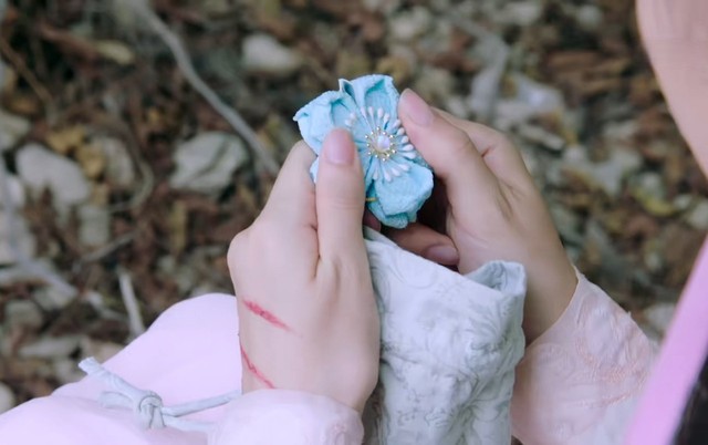 褚璇玑(欣喜的端详了一会儿)“哦,这个就是蓝色,那我最喜欢的就是蓝色”(放在鼻翼下闻了闻)“它香吗?好看吗?”