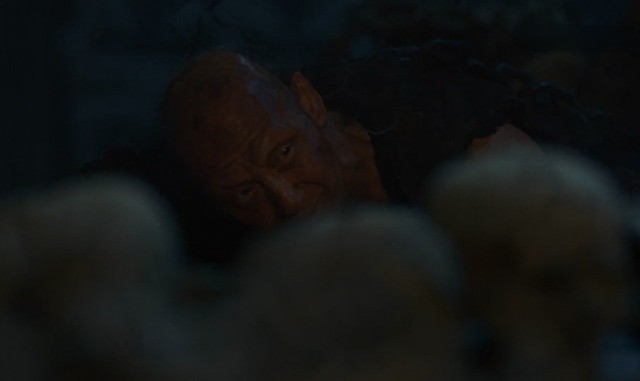 这时,一个看似活人的男子从那堆枯骨当中慢慢的抬起头来。