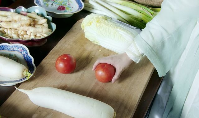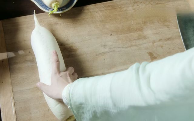 紧接着,绿袖拿出一个巨大的白萝卜,摆在案板上,便开始头头是道了。
