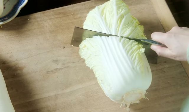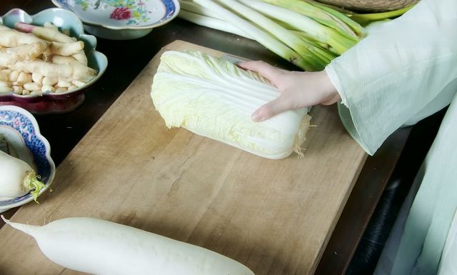 紧接着绿袖又拿了一颗大白菜放在了案板上。