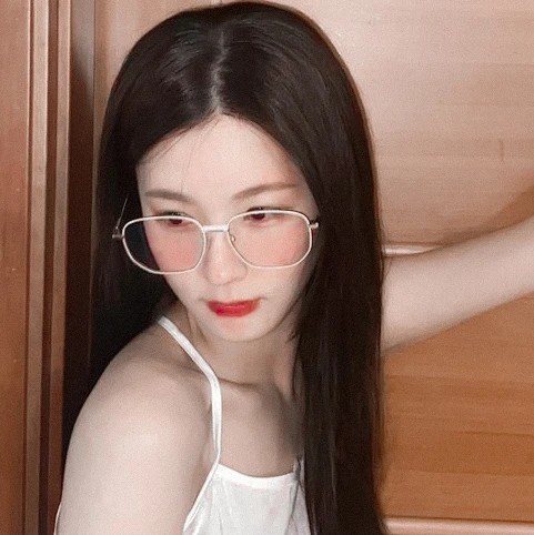 她有点近视,又没带隐形眼镜,所以干脆架了副眼镜,金框的,挺好看。