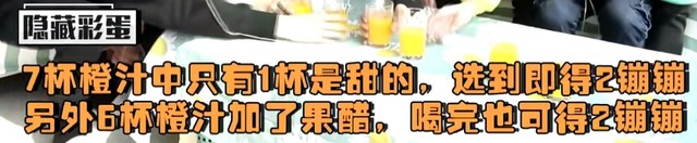 陆楠易随便从八杯里挑了一个,他刚把杯子靠近嘴边想要喝掉,但一阵酸味袭了上来,陆楠易看了眼镜头,就知道又是一个套路了。
