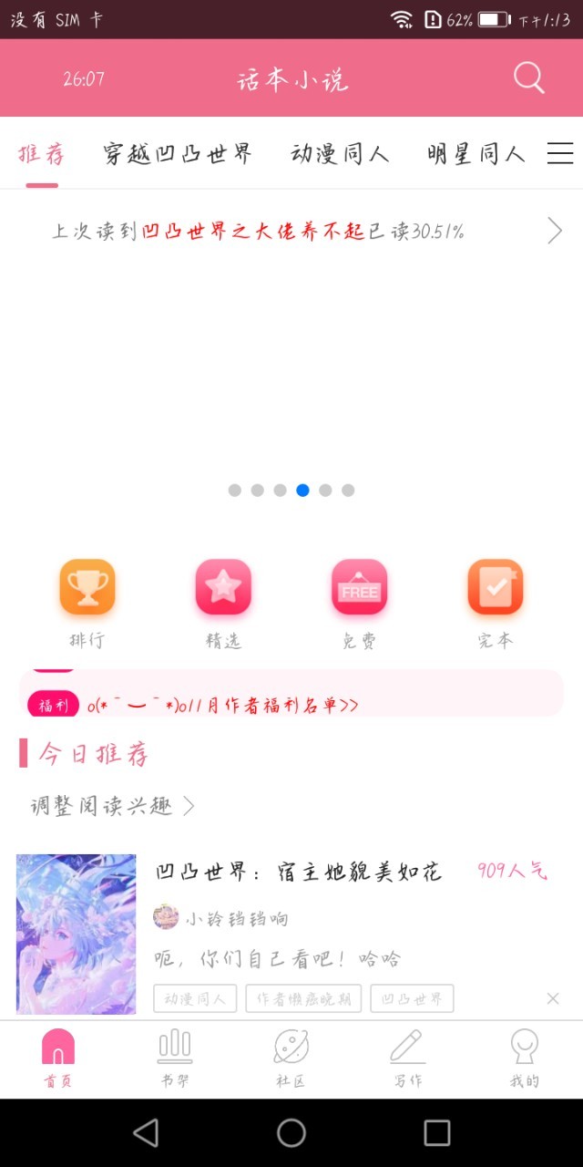 “哇塞塞,你们好给力啊!谢谢大家支持,我居然上了今日推荐”