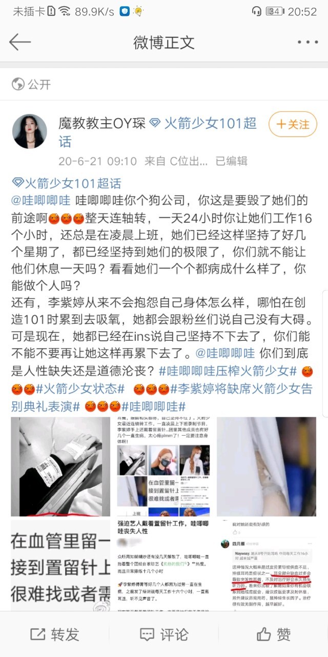 粉丝们纷纷发了微博控诉公司对艺人的不负责