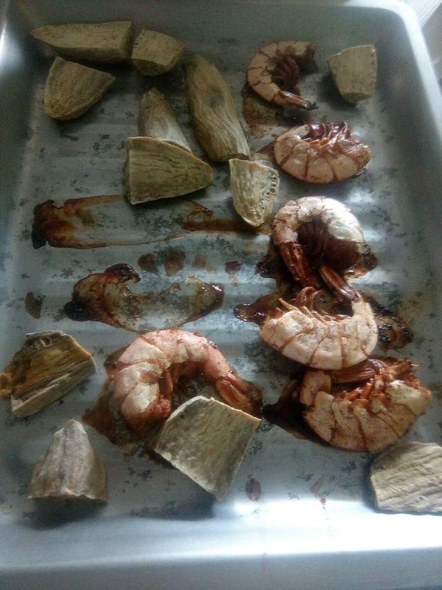看我的烤地瓜和烤虾与蓝莓的塔可哪个好吃?