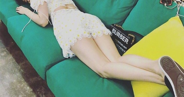 完成妆造的金鹤弦正在躺在自己待机室的沙发上跟刘承熙撒娇
