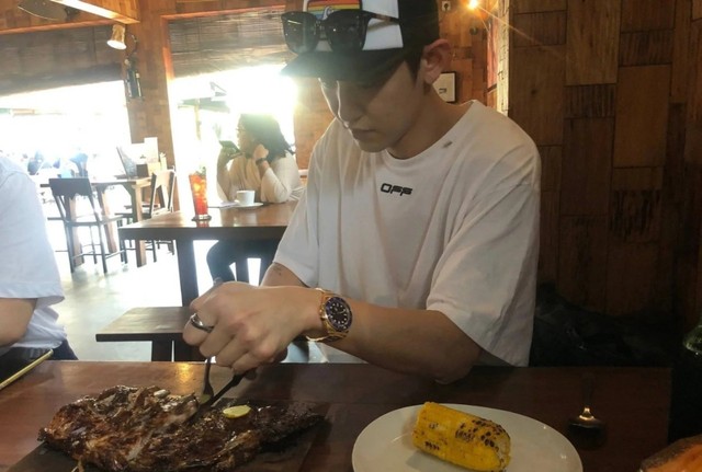 朴灿烈(低头摆弄盘里的菜品)…