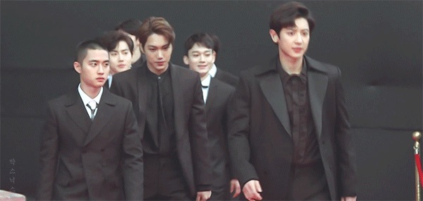 EXO拍完照转身准备离开的时候 人群里突然有人大喊了一句