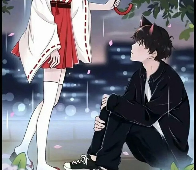 这个时候少女站在他面前撑着伞帮他挡雨,雨夜里,她披散着黑色头发,雨水打湿她额前碎发,但也没挡住她目光里柔情,她穿着禾服,白色过膝袜,身上还自带一股柠檬味的香气,像童话故事里的少女一样!淡蓝色的瞳孔