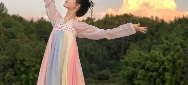 后台里,几个女生也帮左阮打扮了一番,她换上了五彩斑斓的汉服,在台上跳了一曲,真的好像下凡渡劫的小仙女。