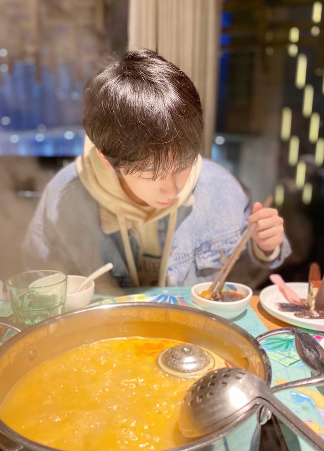贺峻霖终于又抬起了头,然后慢条斯理地夹起一块毛肚,又放到自己的碗里蘸了蘸。