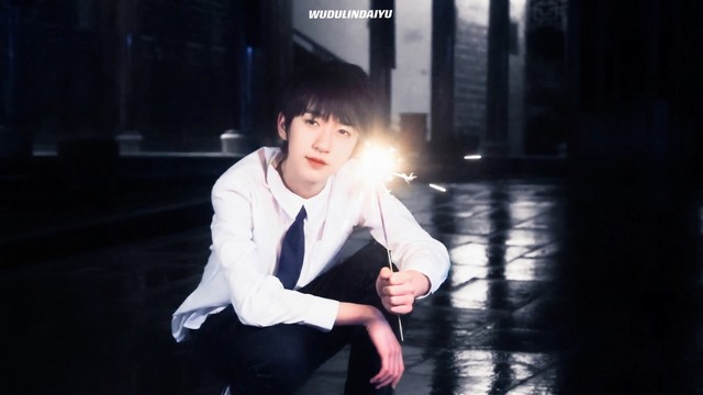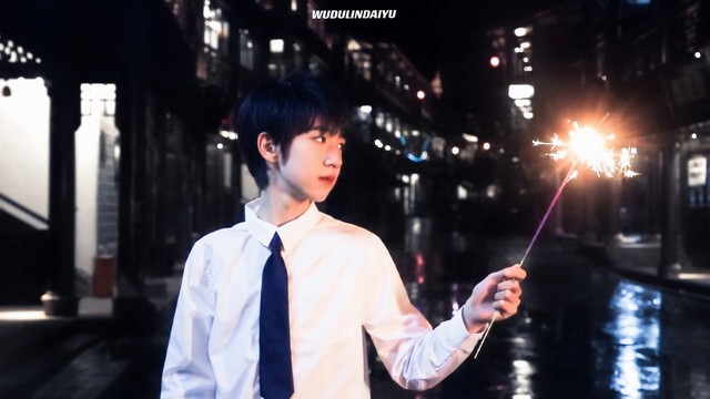 贺峻霖乖乖地蹲在地上,拿燃着的仙女棒,郁栀打开相机,看着眼前被光亮衬着的少年,一时间晃了神。