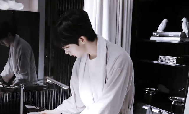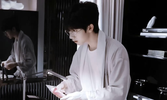 贺峻霖今天戴了眼镜,和平常又是不太一样的风格,唯一一样的,就是这张脸,还是一样的好看。