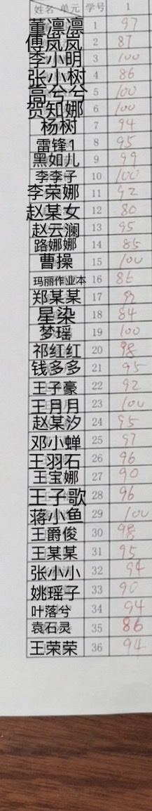 梦瑶(陌离殇)数学成绩单