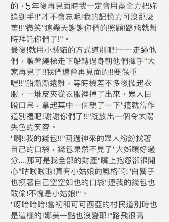 雷利她学的很快,一年时间学会了我教她的所有知识。几天后,她走了,她让多弗朗明哥带她走,去她的家乡,从那以后我再也没有她的消息,多弗朗明哥也没有她的消息。